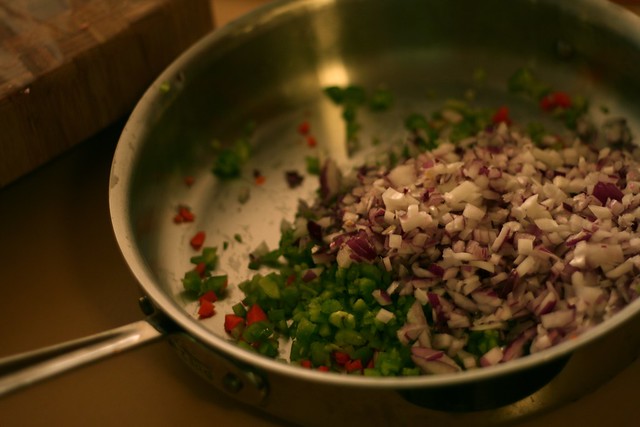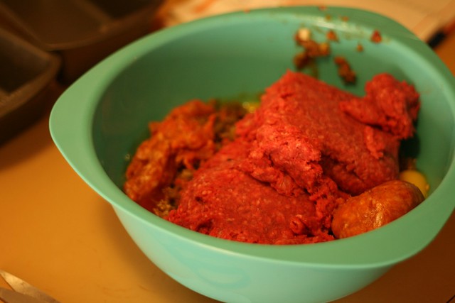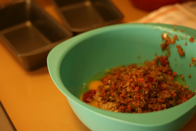 Dice up all the veggies. Don’t pulverize them, but do get pretty small. You don’t want to be all like “ooh I just bit into a tiny little piece of carrot.” You want the veggies to be a part of the meatloaf gestalt.