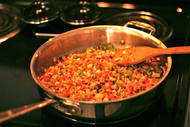 Add the olive oil and sauté over medium heat for 10 minutes until tender. Then mix in all the seasonings.