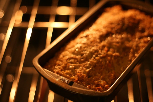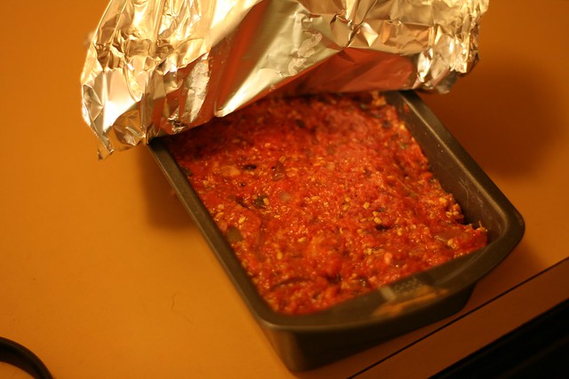 Split up into two bread pans and cover with tin foil.