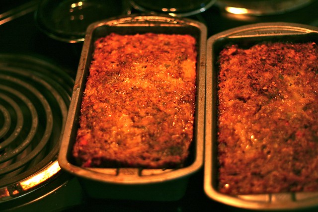 Apologies to the Blue Plate Diner in Madison, Wisconsin. I love your meatloaf. I bought your cookbook to learn how to make it. I have done so many times. It is amazing. Now between my dog chewing on it and the cookbook getting wet, the book is pretty trashed. I am going to blog this recipe so it lives on forever in the great kitchen in the cloud. Serves 8ish (two bread pans).